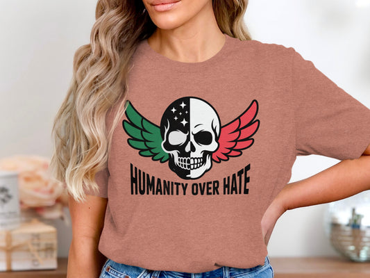 Bold Humanity Over Hate Graphic Skull Design T-Shirts