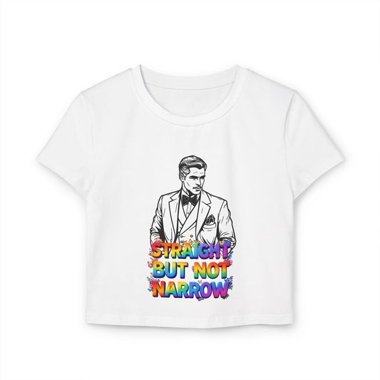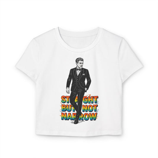 Straight But Not Narrow Women's Baby Tee | Pride Apparel, LGBTQ+ Activism, Casual Wear, Gift for Her, Statement Top