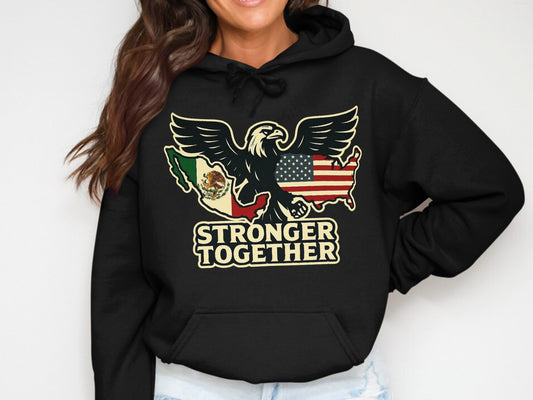Stronger Together USA and Mexico Eagle Design Hoodies