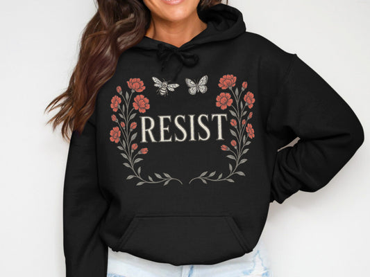 Stylish Floral Resist Print Graphic Trendy Hoodies