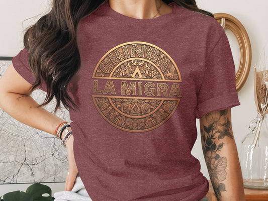 Unique Aztec Design Chinga La Migra Statement T-Shirts