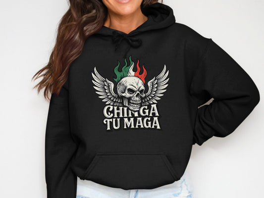 Winged Skull Design Chinga Tu Maga Graphic Hoodies