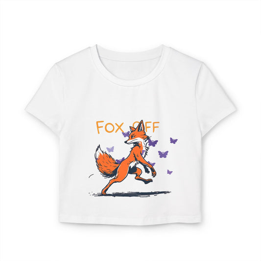 Whimsical Women's Baby Tee - Fox Off Graphic, Cute Cropped T-Shirt, Animal Lover Gift, Casual Summer Top, Trendy Graphic Tee