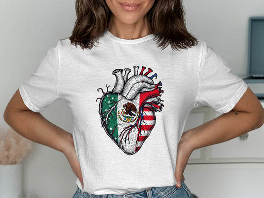 Bald Eagles Clad in USA Mexico Flags Graphic T-Shirts
