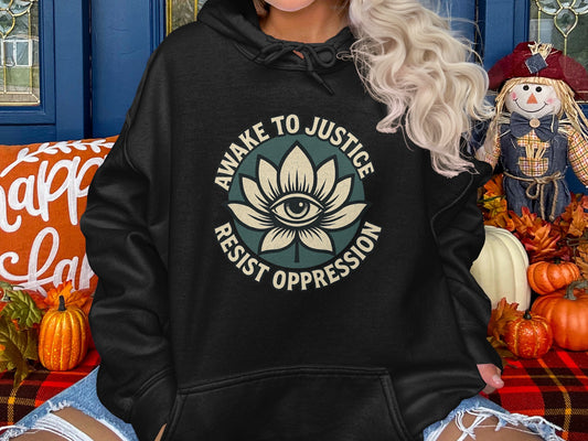 Awake To Justice Resist Oppression Graphic Design Hoodies