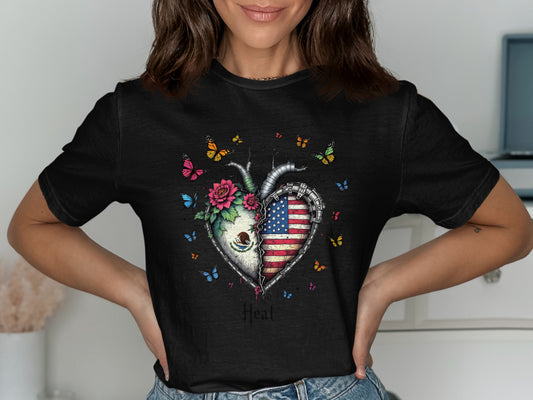 Artistic Heart and Butterflies Design Graphic T-Shirts