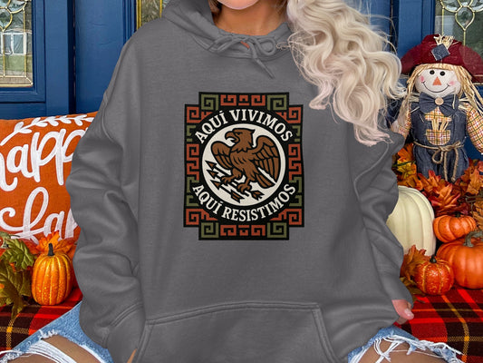 Aqui Vivimos Aqui Resistimos Eagle Graphic Design Hoodies