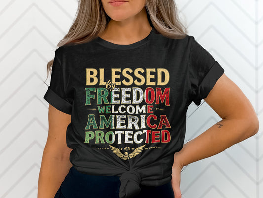 Blessed By Freedom Welcome By Unity America T-Shirts