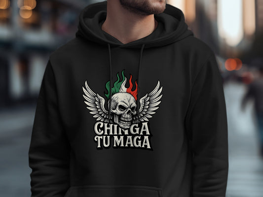 Bold and Fierce Chinga Tu Maga Skull Wing Hoodies