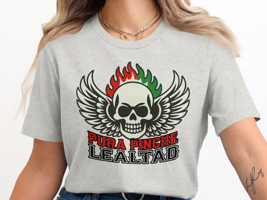 Bold Skull Wing Design Pura Pinche Lealtad T-Shirts