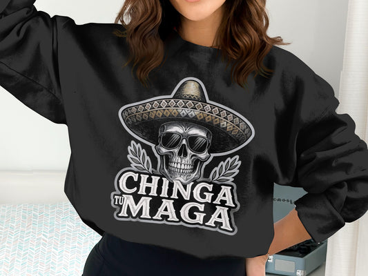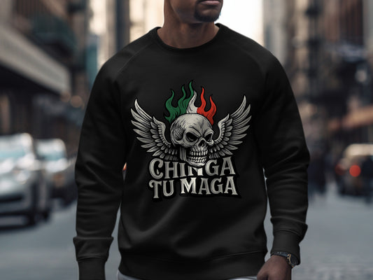 Bold Statement Skull Design Chinga Tu Maga Sweatshirts