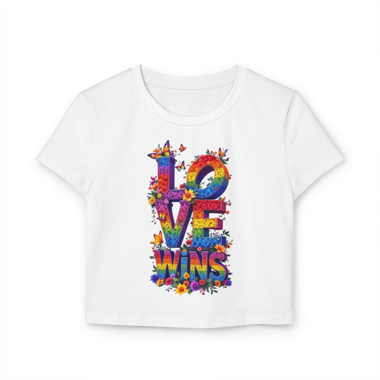 Colorful Love Wins Baby Tee for Women - Floral Design Celebrating Pride