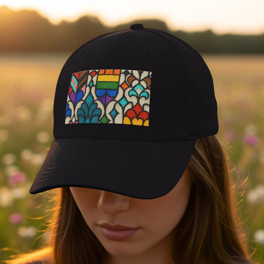 Colorful Stained Glass Design LGBTQ Pride Embroidery Hat