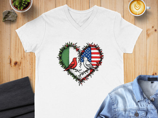 American and Mexican Heart Love Birds Graphic T-Shirts
