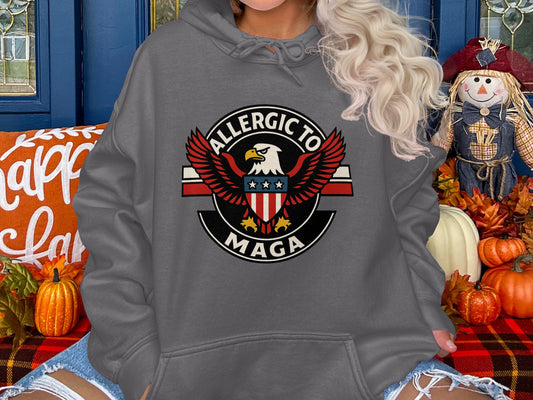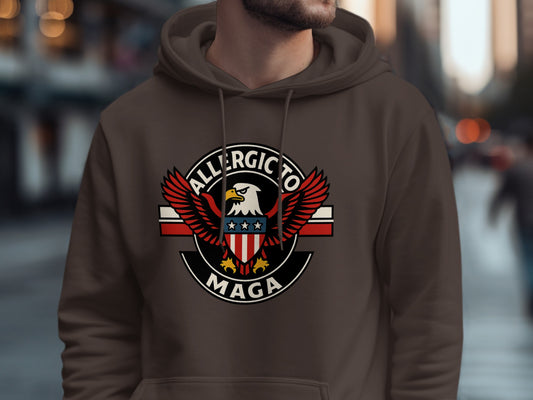 Allergic To MAGA American Eagle Graphic Design Hoodies