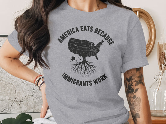 America Eats Because Immigrants Work Slogan Hat embroidery