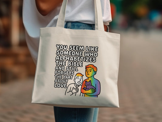 Alphabetizes Bible Forgets Love Pride Beach Tote Bags