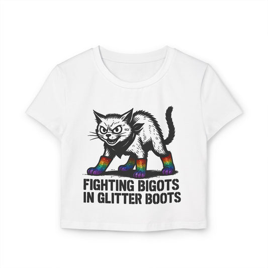 Empowered Cat Women's Baby Tee - Fighting Bigots in Glitter Boots