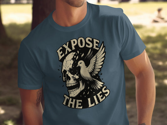 Expose The Lies Skull and Bird Graphic T-Shirts