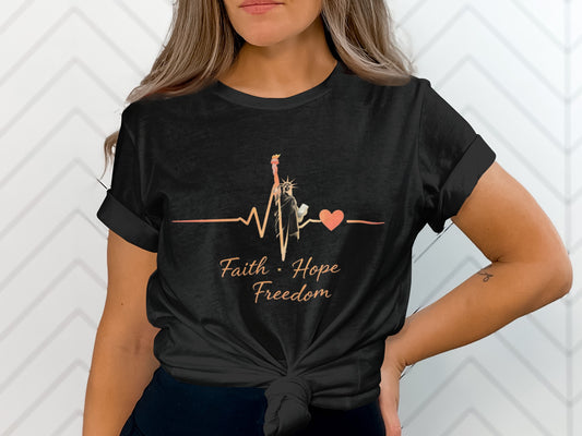Faith Hope Freedom Design Heartbeat Graphic T-Shirts