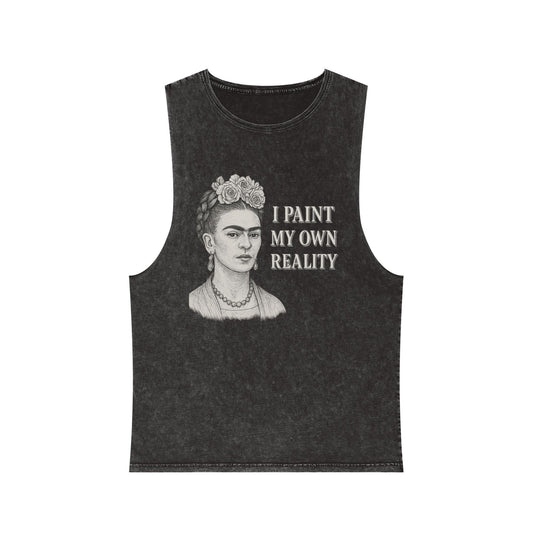 Frida Kahlo Inspirational Stonewash Tank Top, Unisex Graphic Muscle Shirt, Art Lover Gift, Bohemian Summer Top, Creative Reality Apparel