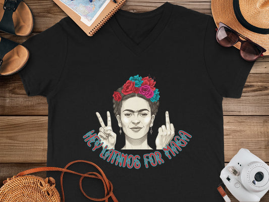 Frida Kahlo Protesting V Neck Hey Latinos For MAGA T-Shirts