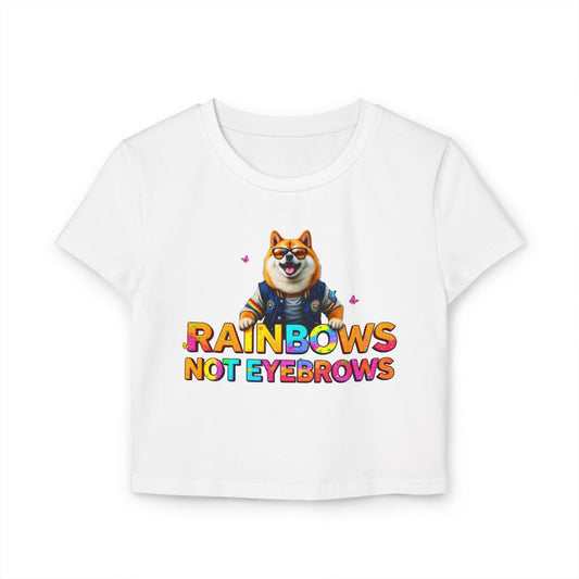 Funny Rainbow Corgi Women's Baby Tee - "Rainbows Not Eyebrows"