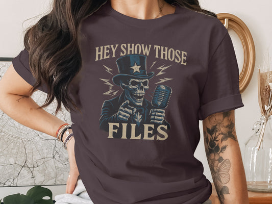 Hey Show Those Files Skull Mic Design T-Shirts