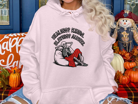 Healing Kinda Slaying Always Graphic Skeleton Hoodies