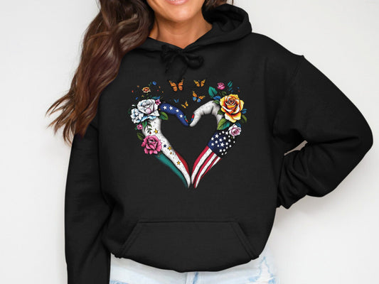 Heart Hands with Flowers and Butterflies Print Hoodies