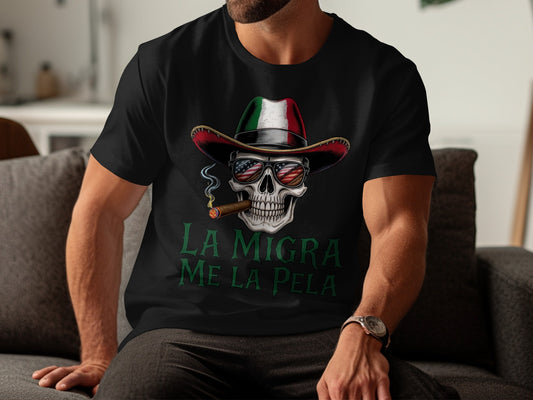La Migra Me La Pela Skull Hat Graphic T-Shirts
