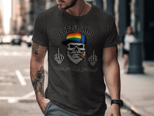 LGBTQ Ally Skull Design Graphic Statement T-Shirts