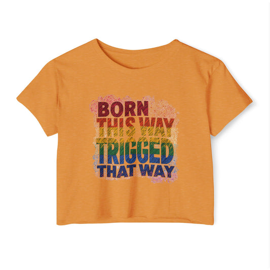 Pride crop top Women’s Festival Crop Top - 'Born This Way, Triggered That Way' Rainbow Tee