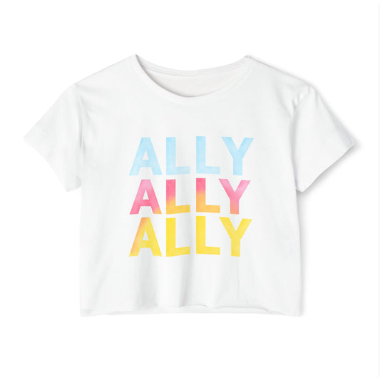 Pride corp top Women's Festival Crop Top - Colorful 'ALLY' Graphic Tee for Music Lovers