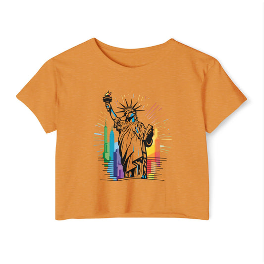 Pride corp top Women's Festival Crop Top - Statue of Liberty Colorful Design for Summer Celebrations