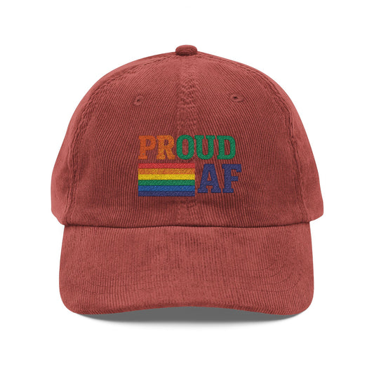 Proud AF Vintage Corduroy Cap, Rainbow Embroidered Hat for Pride, Casual Wear, Gift for LGBTQ+ Friends