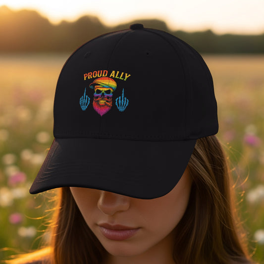 Proud Ally Rainbow Skull Graphic Embroidery Hat