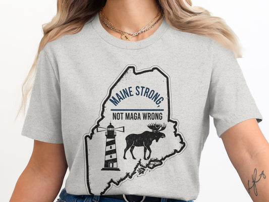 Maine Strong Not MAGA Wrong Lighthouse Moose Anti Trump T-Shirts