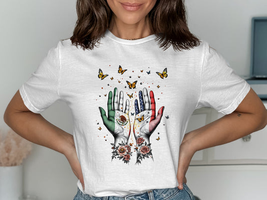 Beautiful Mexico USA Flag Butterfly Design T-Shirts