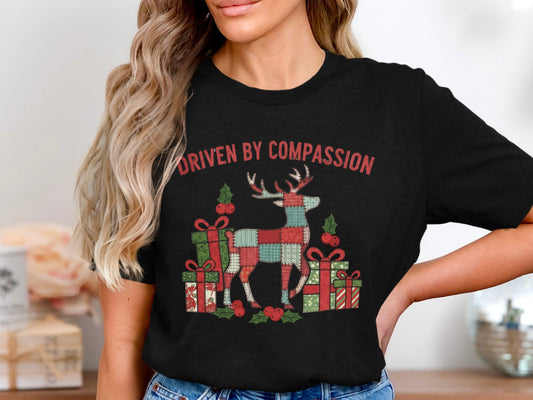 Holiday Deer T-Shirts - Driven By Compassion Deer With Presents | Festive Gift Tee