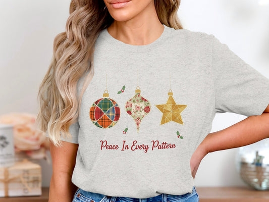 Holiday Season T-Shirts – Peace Pattern Shirt | Festive Ornament Tee Gift