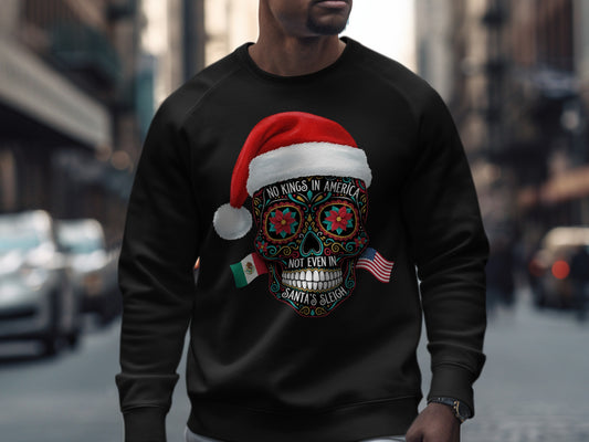 No Kings in America Santa's Sleigh Sugar Skull Sweatshirts
