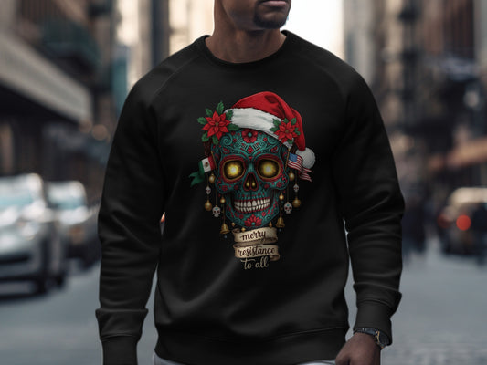 Merry Resistance to All Decorated Skull Image Sweatshirts