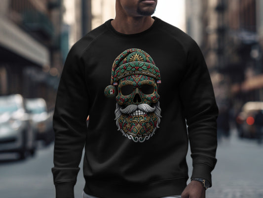 Colorful Calavera Sugar Skull Santa Hat Graphic Sweatshirts