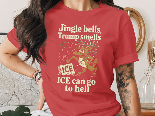 Jingle Bells Trump Smells with ICE Reindeer T-Shirts