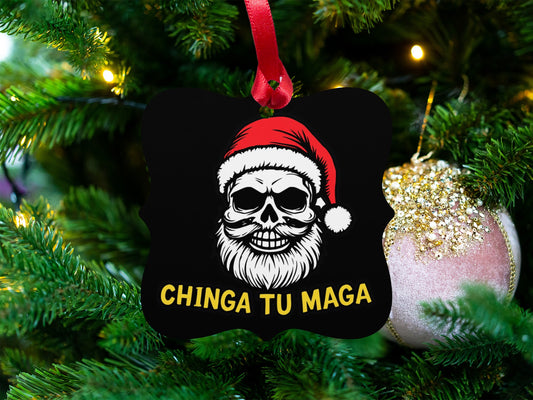 Santa Skull With Chinga Tu Maga Slogan Funny Design Ornaments