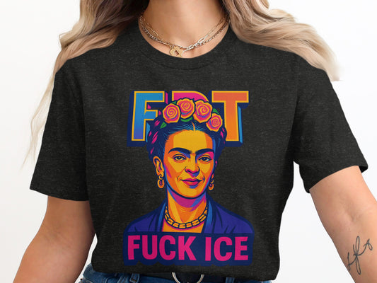 Bold Frida Kahlo FDT Fuck ICE Graphic T-Shirts