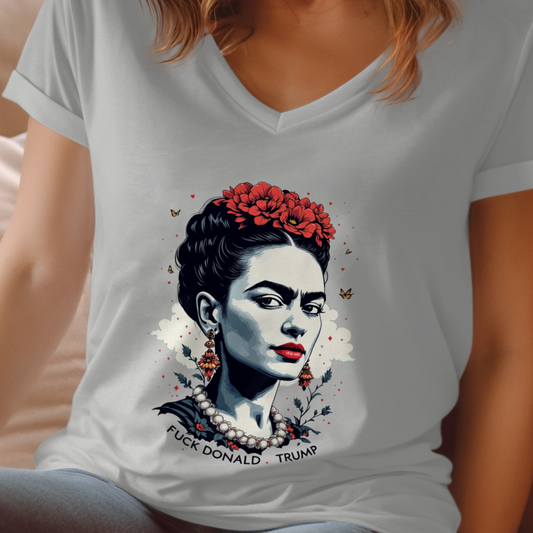 Donald FDT Shirt Frida Kahlo Graphic V Neck Pro Immigrants T-Shirts