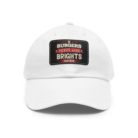 Dad Hat with Leather Patch - Burgers, Beers, and Bright Skies