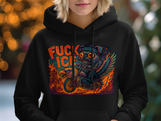 Anti Trump Fuck ICE Chinga Tu MAGA Dog on Motorcycle Hoodies